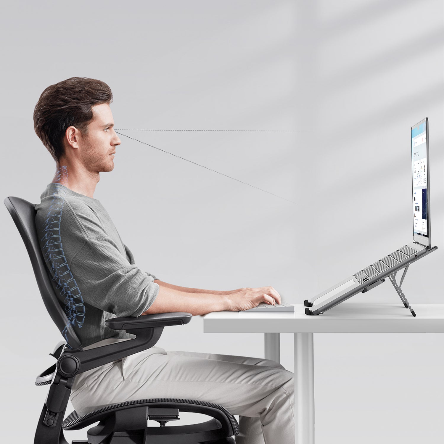 Does this portable laptop stand have non-slip features to keep the device in place?