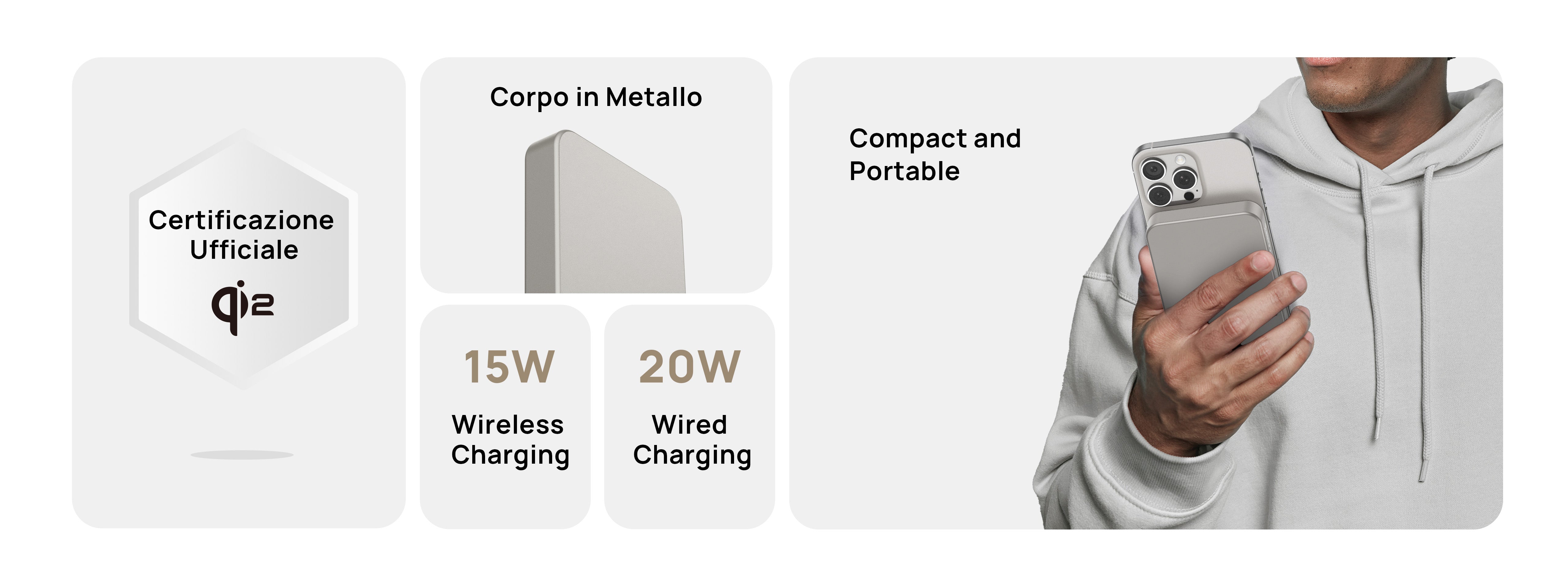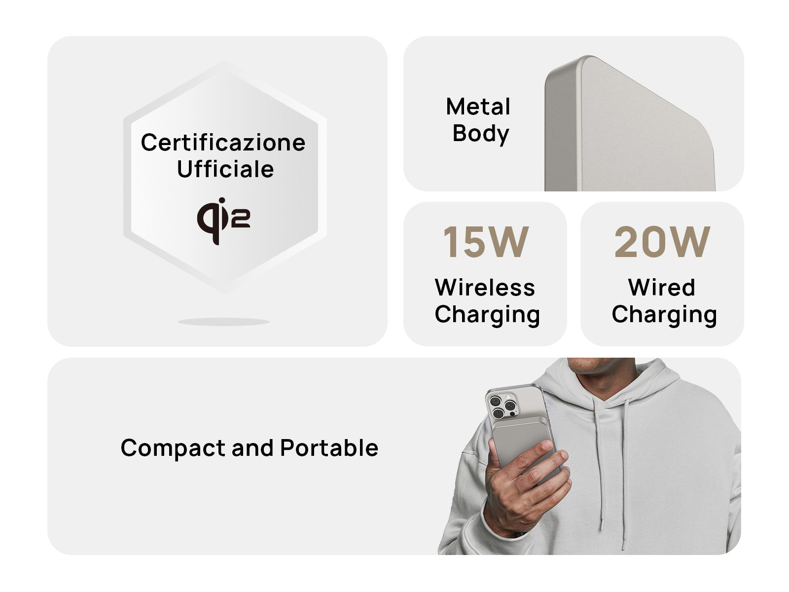 Qi2-certified 15W fast wireless output, charging the iPhone 15 Pro from 0 to 30% in 25 mins, keeping your devices powered wherever you go.